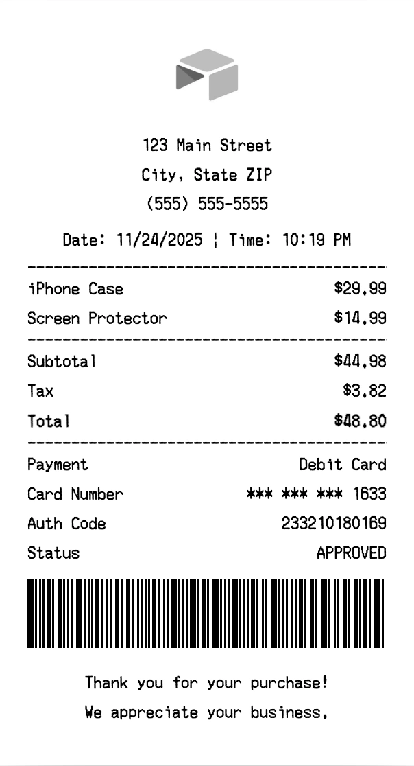 Can I add multiple items? Yes, add everything from your purchase. The receipt expands to fit all items automatically.