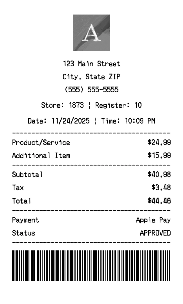 Can I add multiple items? Yes, add everything from your purchase. The receipt expands to fit all items automatically.