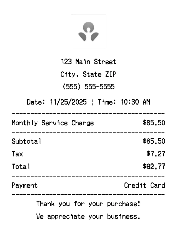 What format are the receipts? Receipts are generated as high-quality PNG images that you can download instantly and use for any documentation needs.