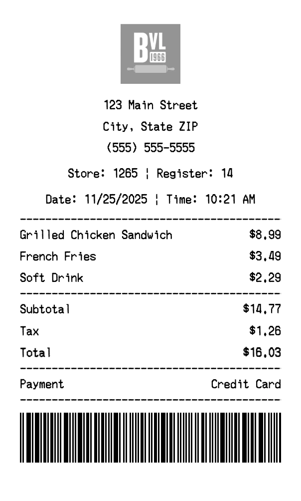 Our Biscuitville receipt generator creates professional receipts that match the authentic Biscuitville format. Each receipt includes the company logo, business information, transaction details, itemized purchase list, tax calculations, and payment information. All receipts are formatted to look exactly like real Biscuitville receipts, making them perfect for expense reports, tax documentation, and reimbursement purposes.