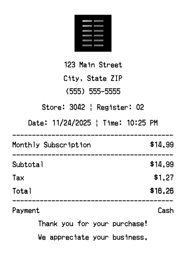 Can I add multiple items? Yes, add everything from your purchase. The receipt expands to fit all items automatically.