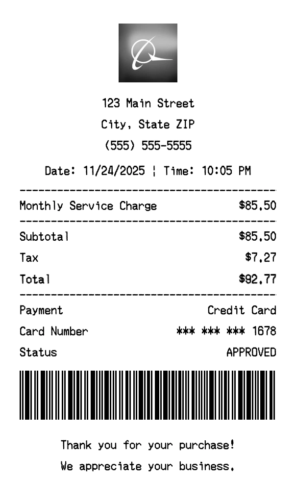Our Boeing receipt generator creates professional receipts that match the authentic Boeing format. Each receipt includes the company logo, business information, transaction details, itemized purchase list, tax calculations, and payment information. All receipts are formatted to look exactly like real Boeing receipts, making them perfect for expense reports, tax documentation, and reimbursement purposes.