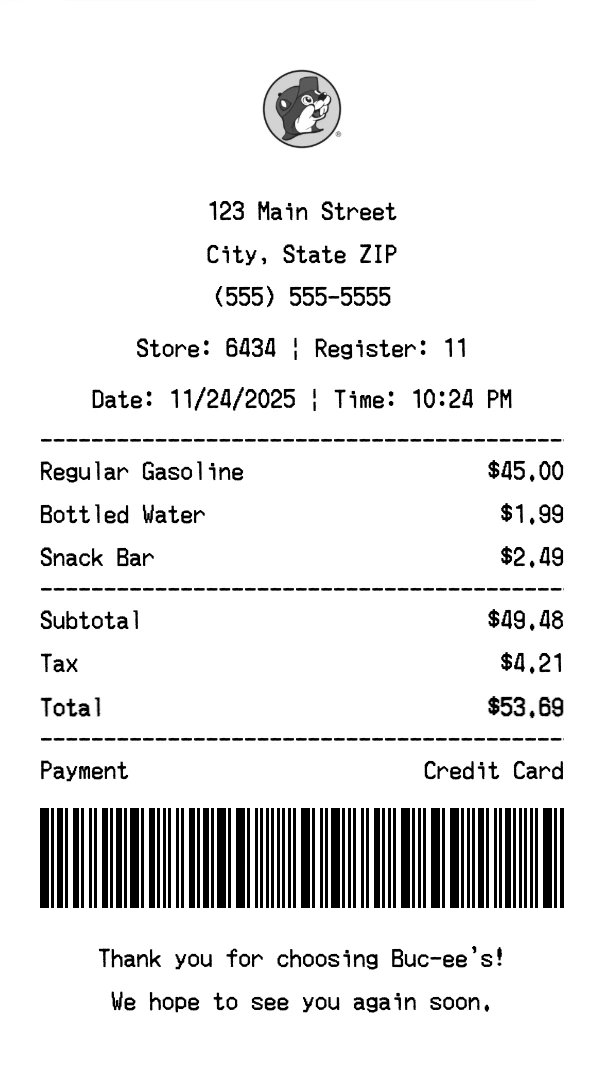 Create Buc-ee's Receipt