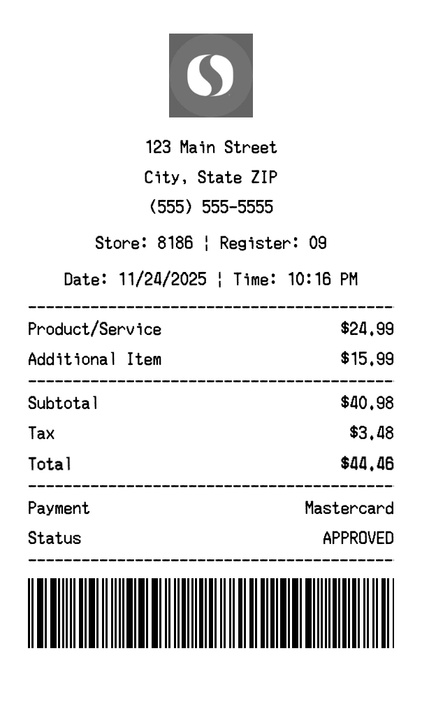 Can I add multiple items? Yes, add everything from your purchase. The receipt expands to fit all items automatically.