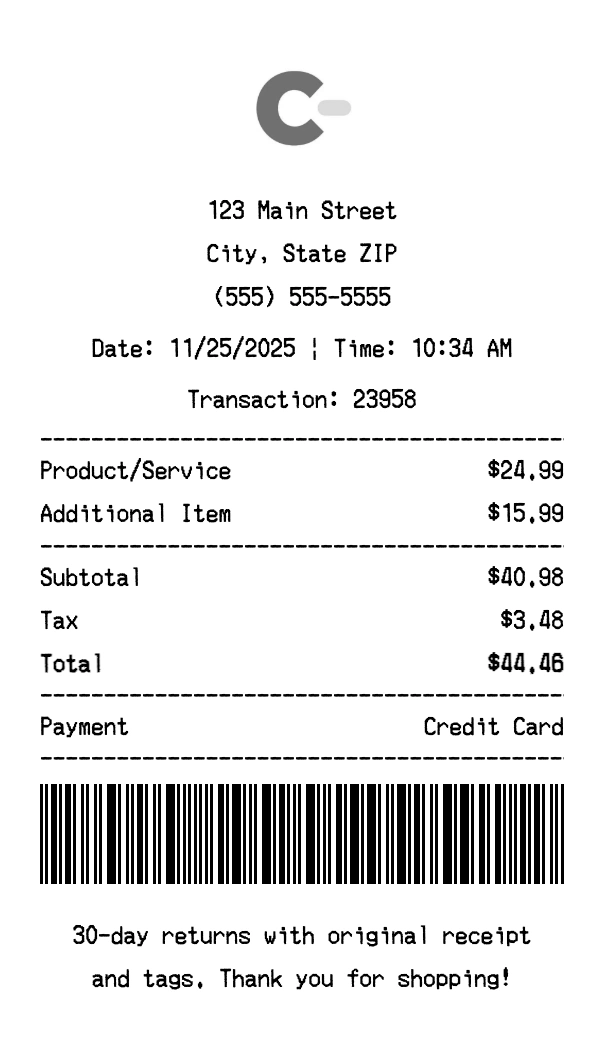 Can I add multiple items? Yes, add everything from your purchase. The receipt expands to fit all items automatically.