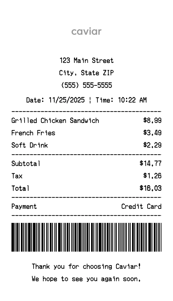 Use our free Caviar Receipt Maker to create professional receipts in seconds.