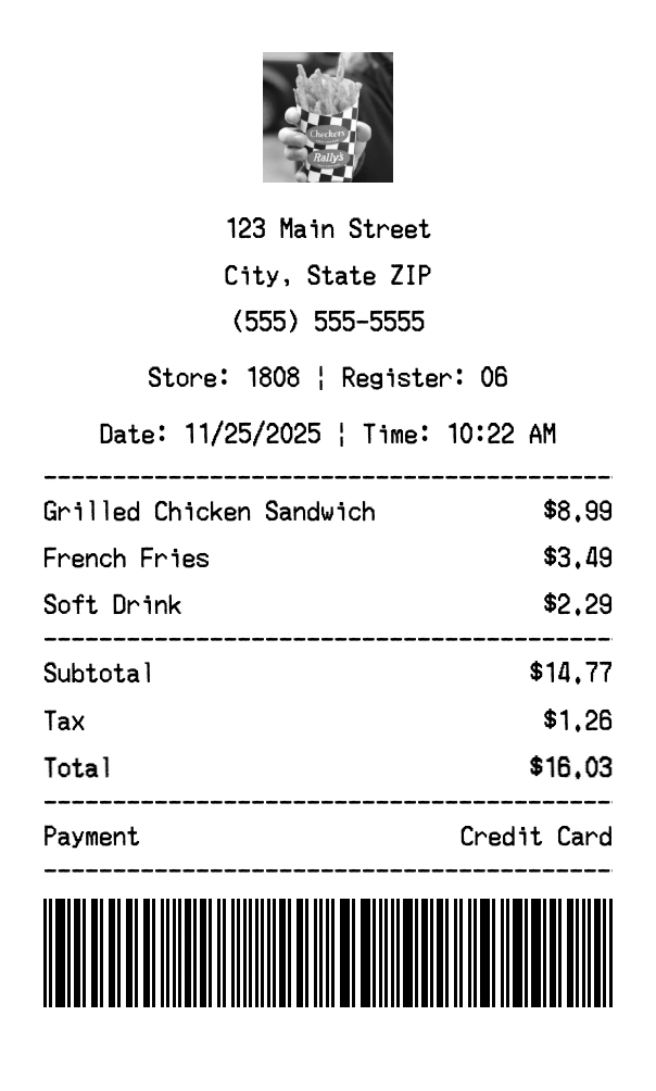Create authentic Checkers receipts instantly. Our free receipt generator produces professional fast food receipts with company logo, itemized purchases, tax calculations, and payment details. Perfect for expense tracking, reimbursement, and documentation. Download high-quality PNG receipts in seconds.