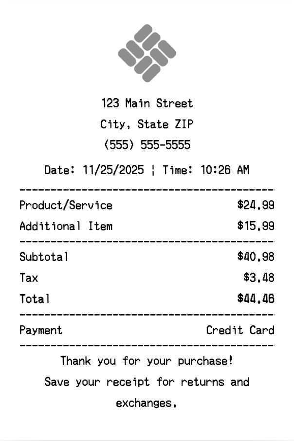 Can I add multiple items? Yes, add everything from your purchase. The receipt expands to fit all items automatically.