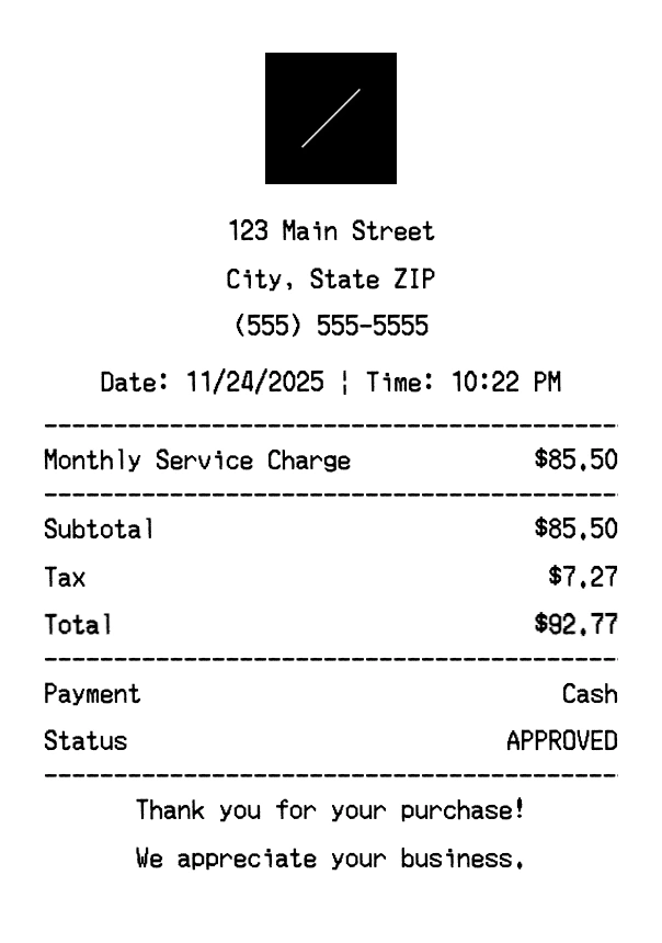 What format are the receipts? Receipts are generated as high-quality PNG images that you can download instantly and use for any documentation needs.
