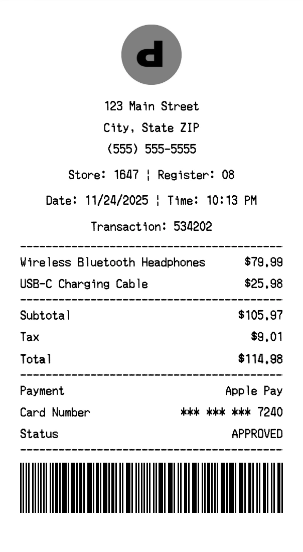 Can I add multiple items? Yes, add everything from your purchase. The receipt expands to fit all items automatically.