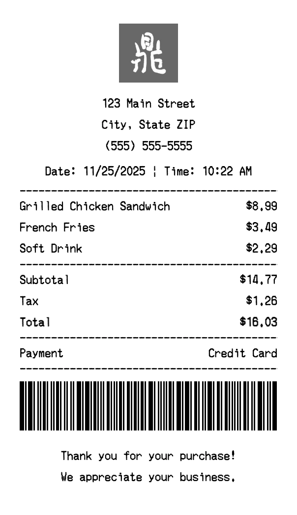 Create authentic Din Tai Fung receipts instantly. Our free receipt generator produces professional casual dining receipts with company logo, itemized purchases, tax calculations, and payment details. Perfect for expense tracking, reimbursement, and documentation. Download high-quality PNG receipts in seconds.