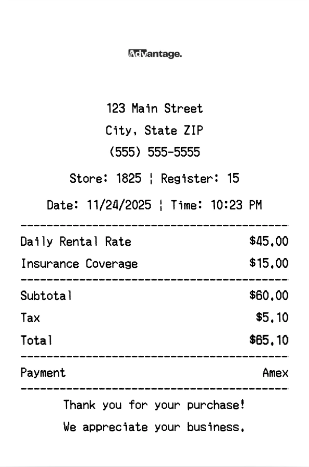 Create authentic E-Z Rent-A-Car receipts instantly. Our free receipt generator produces professional car rental receipts with company logo, itemized purchases, tax calculations, and payment details. Perfect for expense tracking, reimbursement, and documentation. Download high-quality PNG receipts in seconds.