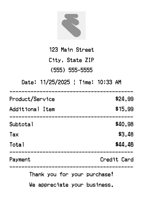 Can I add multiple items? Yes, add everything from your purchase. The receipt expands to fit all items automatically.