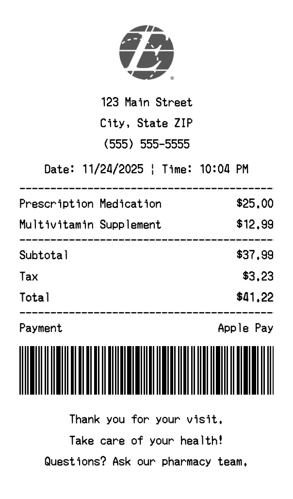 Create authentic Express Scripts Holding receipts instantly. Our free receipt generator produces professional healthcare receipts with company logo, itemized purchases, tax calculations, and payment details. Perfect for expense tracking, reimbursement, and documentation. Download high-quality PNG receipts in seconds.