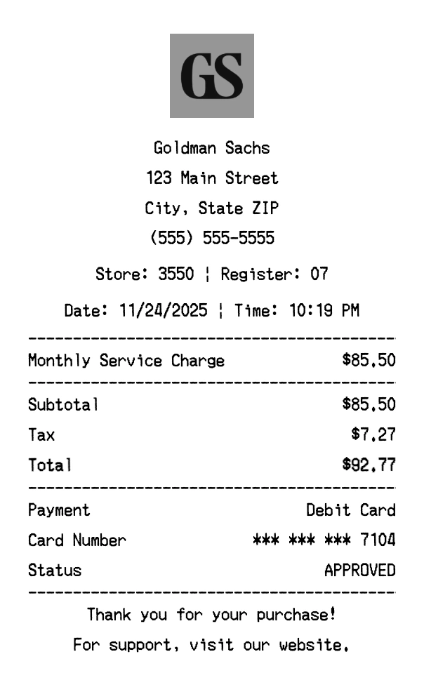 Create Goldman Sachs Receipt