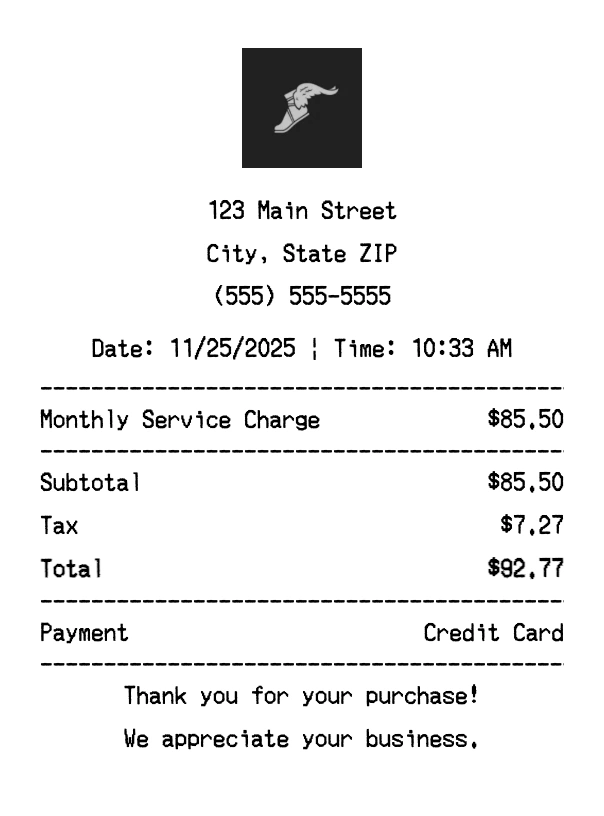 What format are the receipts? Receipts are generated as high-quality PNG images that you can download instantly and use for any documentation needs.