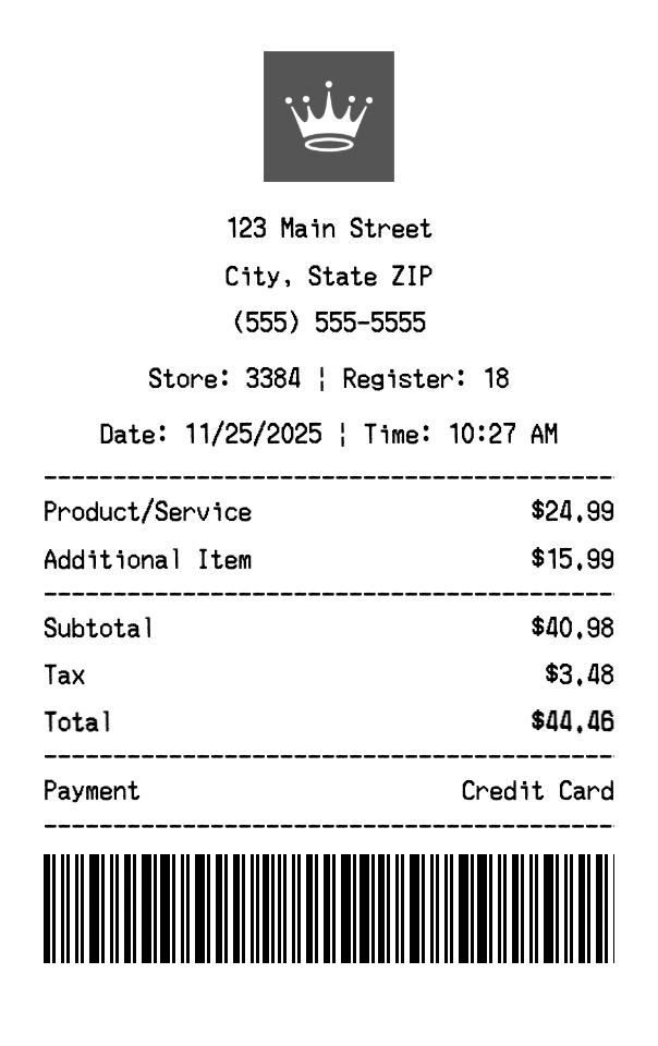 Create authentic Hallmark Gold Crown receipts instantly. Our free receipt generator produces professional gift store receipts with company logo, itemized purchases, tax calculations, and payment details. Perfect for expense tracking, reimbursement, and documentation. Download high-quality PNG receipts in seconds.