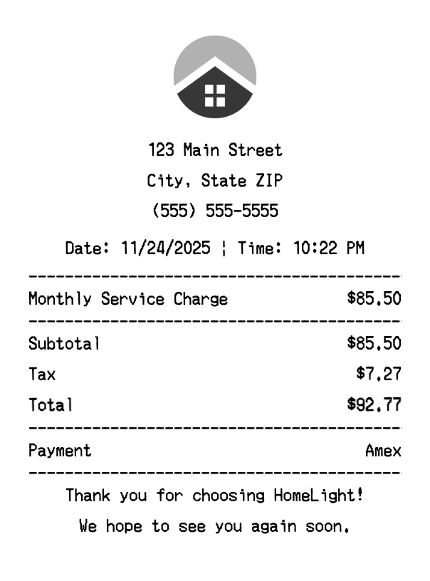 Create authentic HomeLight receipts instantly. Our free receipt generator produces professional real estate receipts with company logo, itemized purchases, tax calculations, and payment details. Perfect for expense tracking, reimbursement, and documentation. Download high-quality PNG receipts in seconds.