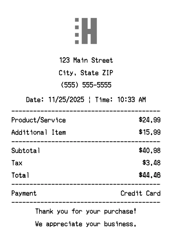 Can I add multiple items? Yes, add everything from your purchase. The receipt expands to fit all items automatically.