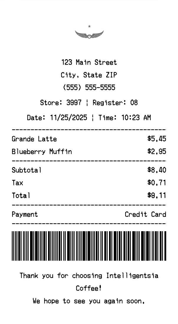 Use our free Intelligentsia Coffee Receipt Maker to create professional receipts in seconds.