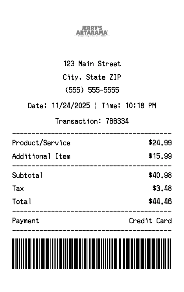 Create Jerry's Artarama Receipt