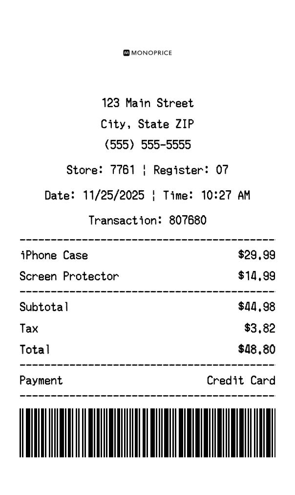 Create authentic Monoprice receipts for electronics retail purchases. Our free receipt generator tool helps you create professional, detailed receipts instantly. Perfect for business expense tracking, reimbursement requests, and personal documentation. Download high-quality PNG receipts in seconds, no signup required.