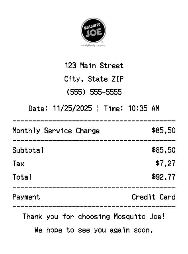 Create Mosquito Joe Receipt