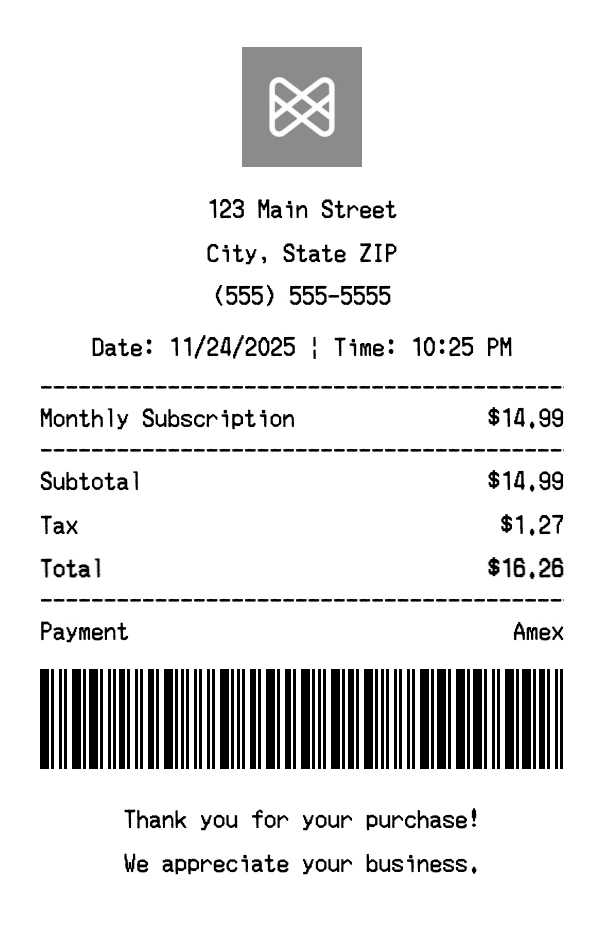 Can I add multiple items? Yes, add everything from your purchase. The receipt expands to fit all items automatically.