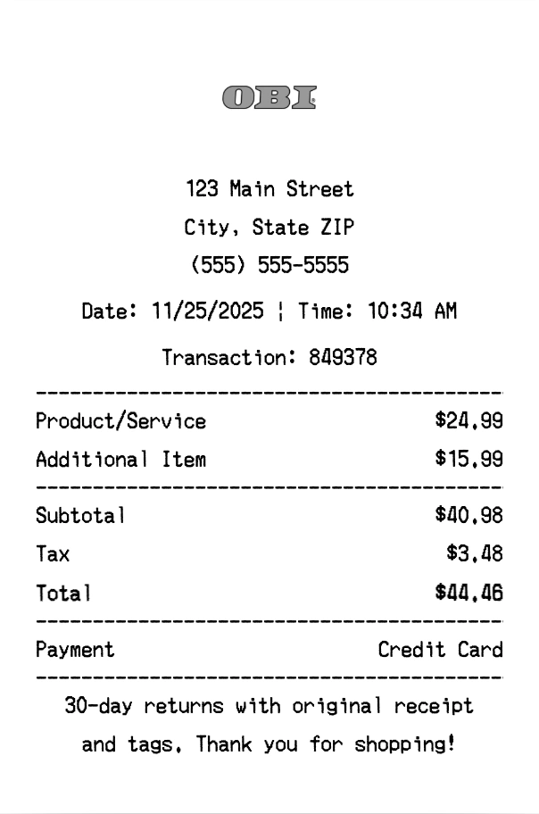 Use our free OBI Receipt Maker to create professional receipts in seconds.