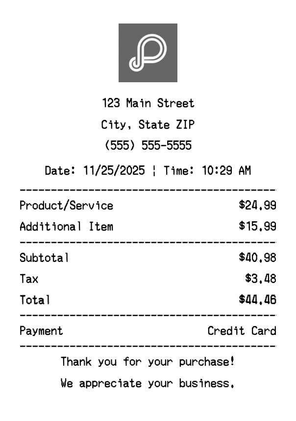 Can I add multiple items? Yes, add everything from your purchase. The receipt expands to fit all items automatically.