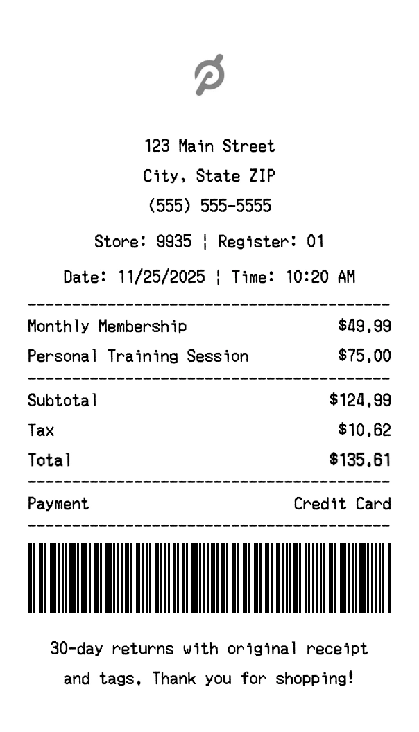Create authentic Peloton receipts for fitness purchases. Our free receipt generator tool helps you create professional, detailed receipts instantly. Perfect for business expense tracking, reimbursement requests, and personal documentation. Download high-quality PNG receipts in seconds, no signup required.