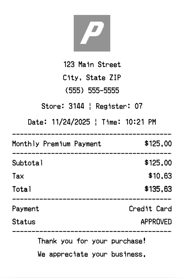 Create authentic Progressive receipts for insurance purchases. Our free receipt generator tool helps you create professional, detailed receipts instantly. Perfect for business expense tracking, reimbursement requests, and personal documentation. Download high-quality PNG receipts in seconds, no signup required.