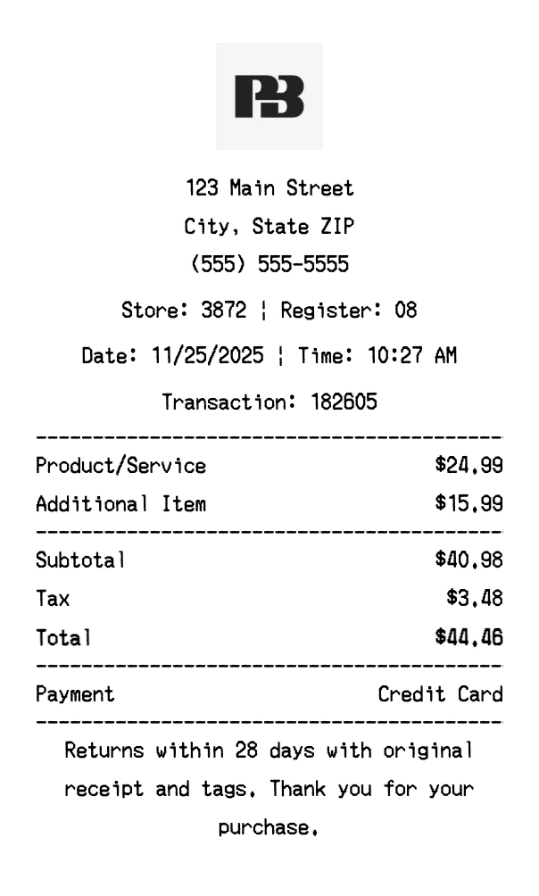 Can I add multiple items? Yes, add everything from your purchase. The receipt expands to fit all items automatically.