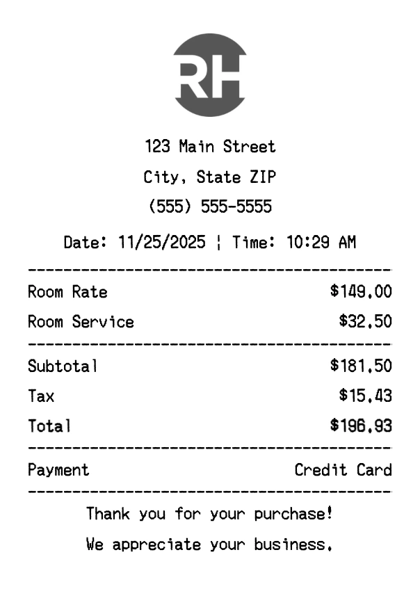 Create authentic Radisson receipts instantly. Our free receipt generator produces professional hotels receipts with company logo, itemized purchases, tax calculations, and payment details. Perfect for expense tracking, reimbursement, and documentation. Download high-quality PNG receipts in seconds.