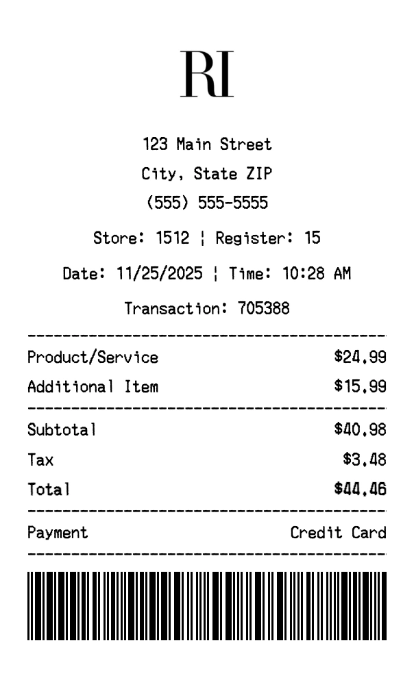 Can I add multiple items? Yes, add everything from your purchase. The receipt expands to fit all items automatically.