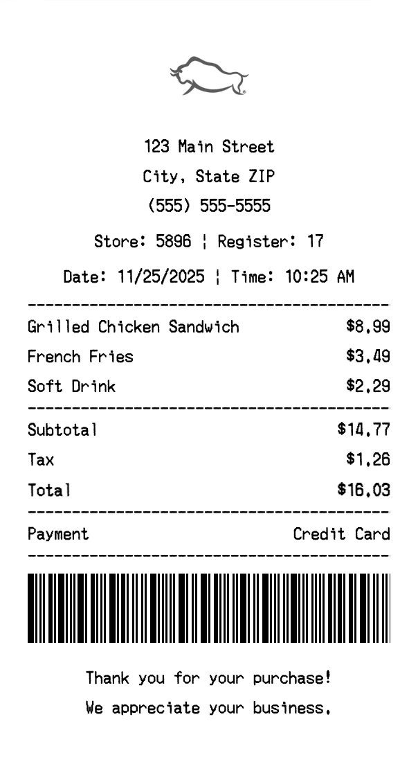 Can I add multiple items? Yes, add everything from your purchase. The receipt expands to fit all items automatically.