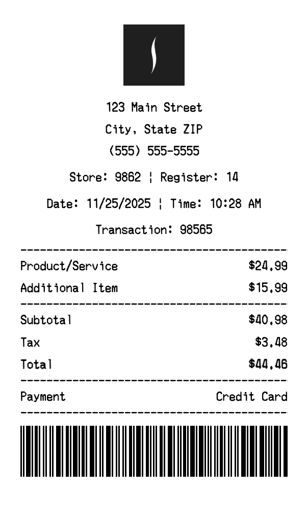 Can I add multiple items? Yes, add everything from your purchase. The receipt expands to fit all items automatically.