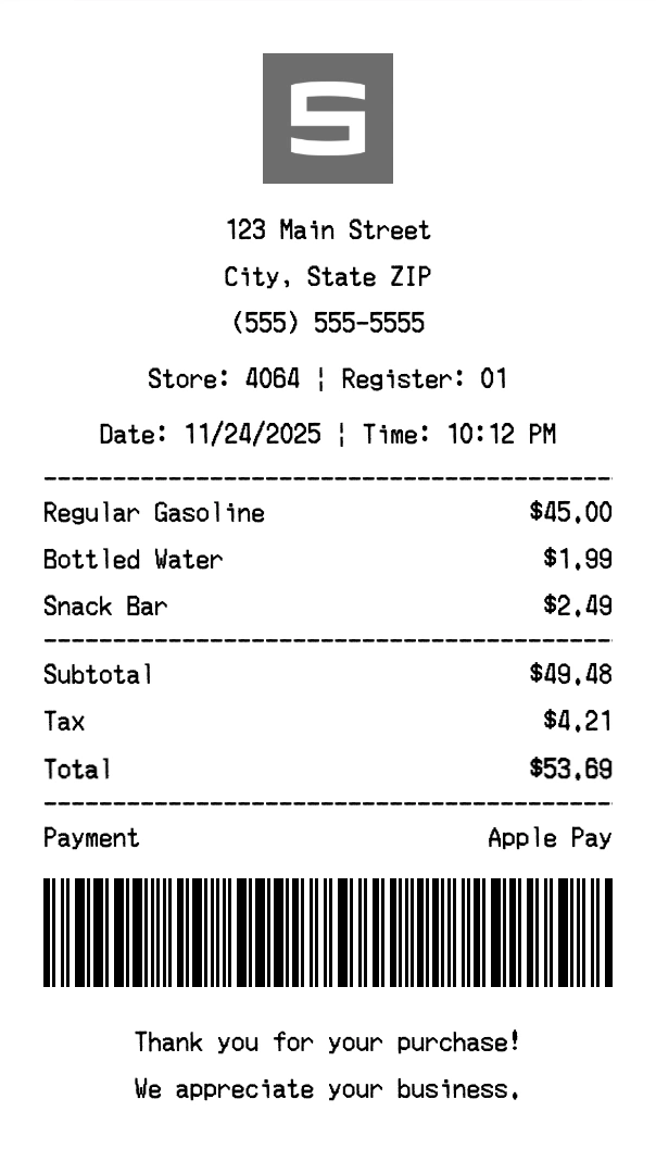 Create authentic Sheetz receipts instantly. Our free receipt generator produces professional convenience store receipts with company logo, itemized purchases, tax calculations, and payment details. Perfect for expense tracking, reimbursement, and documentation. Download high-quality PNG receipts in seconds.
