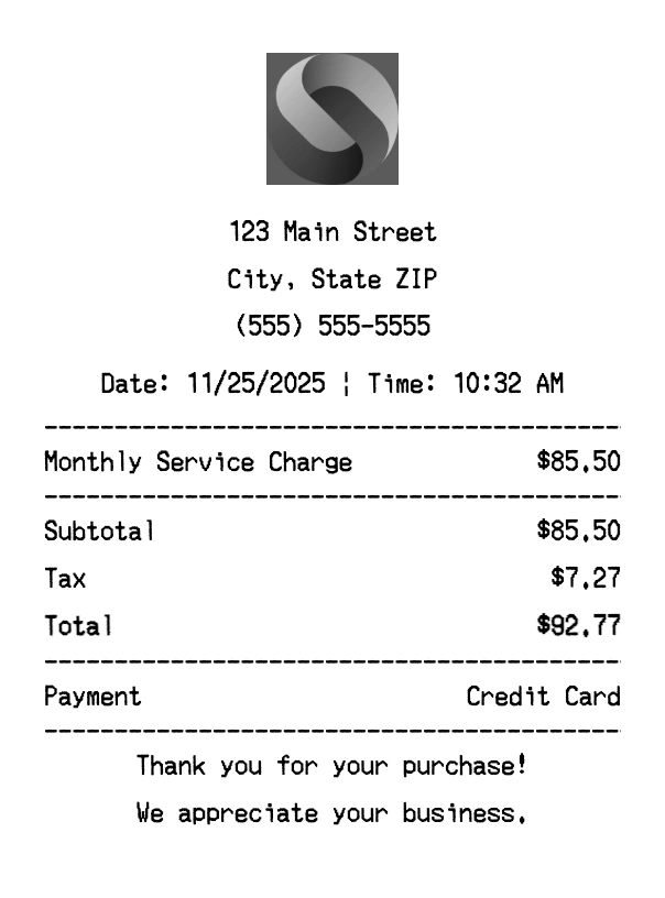 What format are the receipts? Receipts are generated as high-quality PNG images that you can download instantly and use for any documentation needs.
