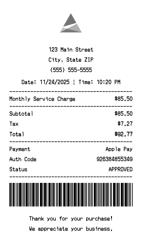 What format are the receipts? Receipts are generated as high-quality PNG images that you can download instantly and use for any documentation needs.
