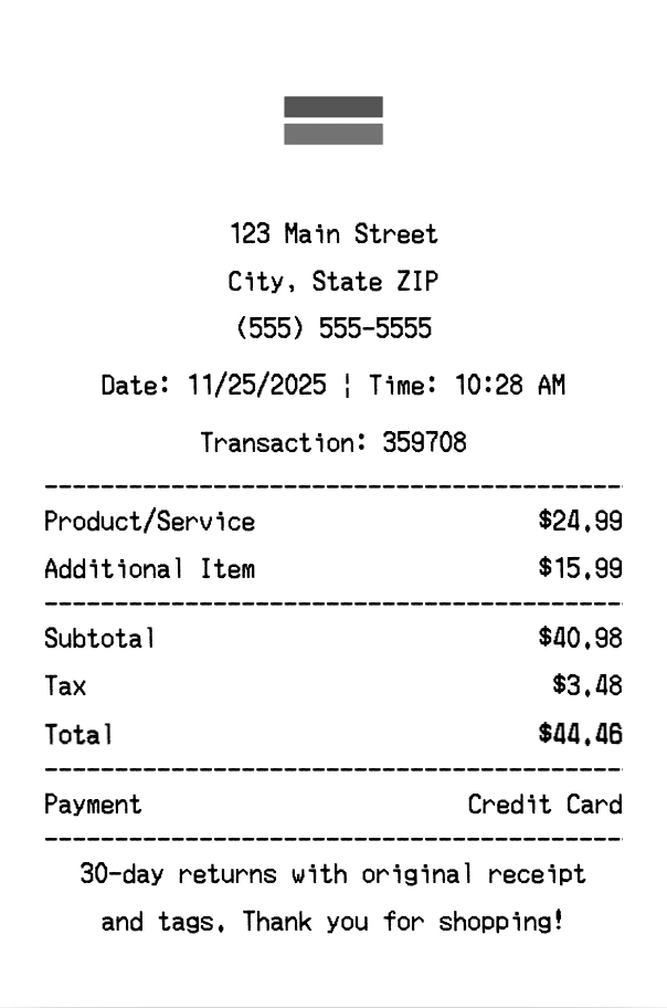 Can I add multiple items? Yes, add everything from your purchase. The receipt expands to fit all items automatically.