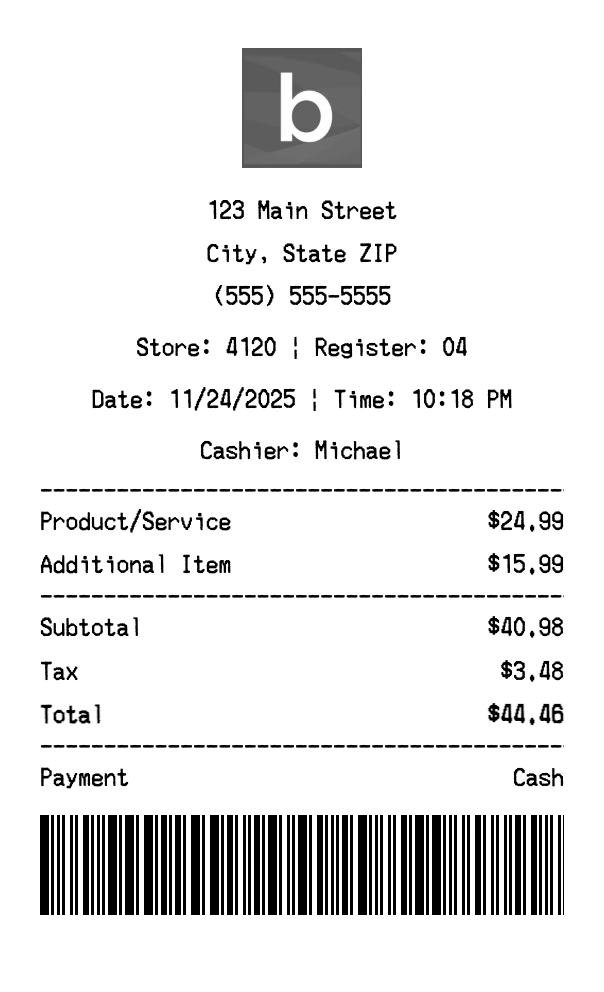 Can I add multiple items? Yes, add everything from your purchase. The receipt expands to fit all items automatically.