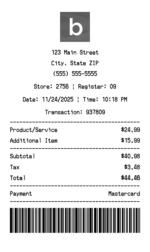 Can I add multiple items? Yes, add everything from your purchase. The receipt expands to fit all items automatically.
