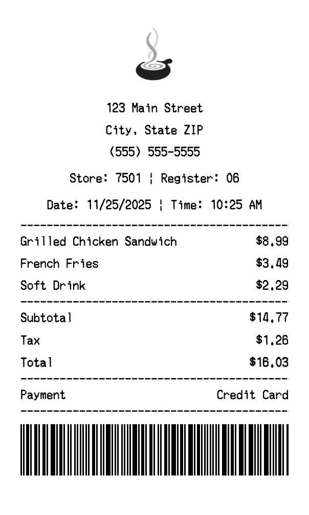 Our The Melting Pot receipt generator creates professional receipts that match the authentic The Melting Pot format. Each receipt includes the company logo, business information, transaction details, itemized purchase list, tax calculations, and payment information. All receipts are formatted to look exactly like real The Melting Pot receipts, making them perfect for expense reports, tax documentation, and reimbursement purposes.