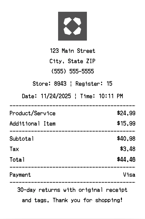 Can I add multiple items? Yes, add everything from your purchase. The receipt expands to fit all items automatically.