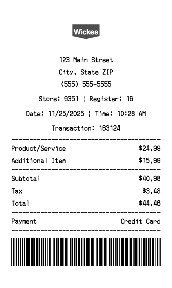 Create authentic Wickes receipts instantly. Our free receipt generator produces professional home improvement receipts with company logo, itemized purchases, tax calculations, and payment details. Perfect for expense tracking, reimbursement, and documentation. Download high-quality PNG receipts in seconds.